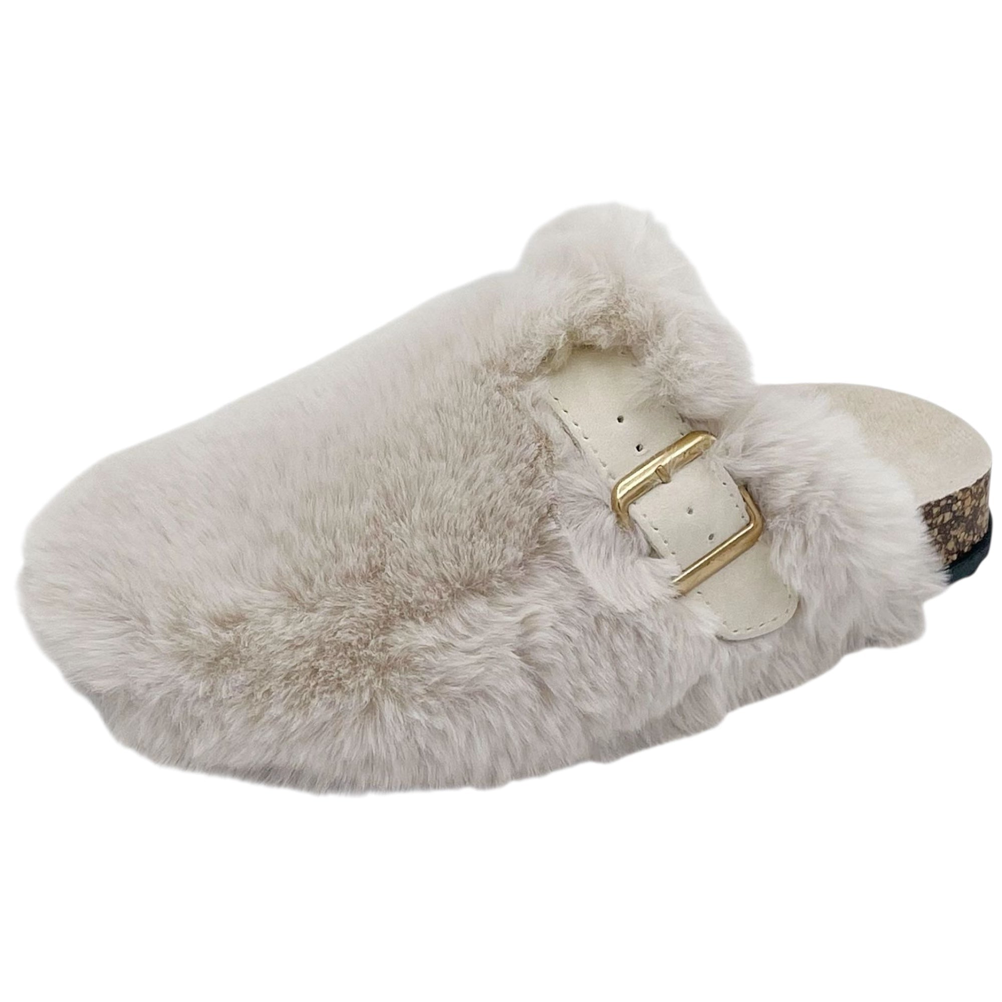 Aggiungi un tocco di comfort e stile alle tue giornate con queste morbide ciabatte in pelliccia sintetica. Il design avvolgente e caldo è perfetto per la stagione fredda, mentre la fibbia regolabile assicura una calzata comoda e personalizzata. La suola in sughero e gomma offre stabilità e leggerezza, ideale sia per l’interno che per uscite.