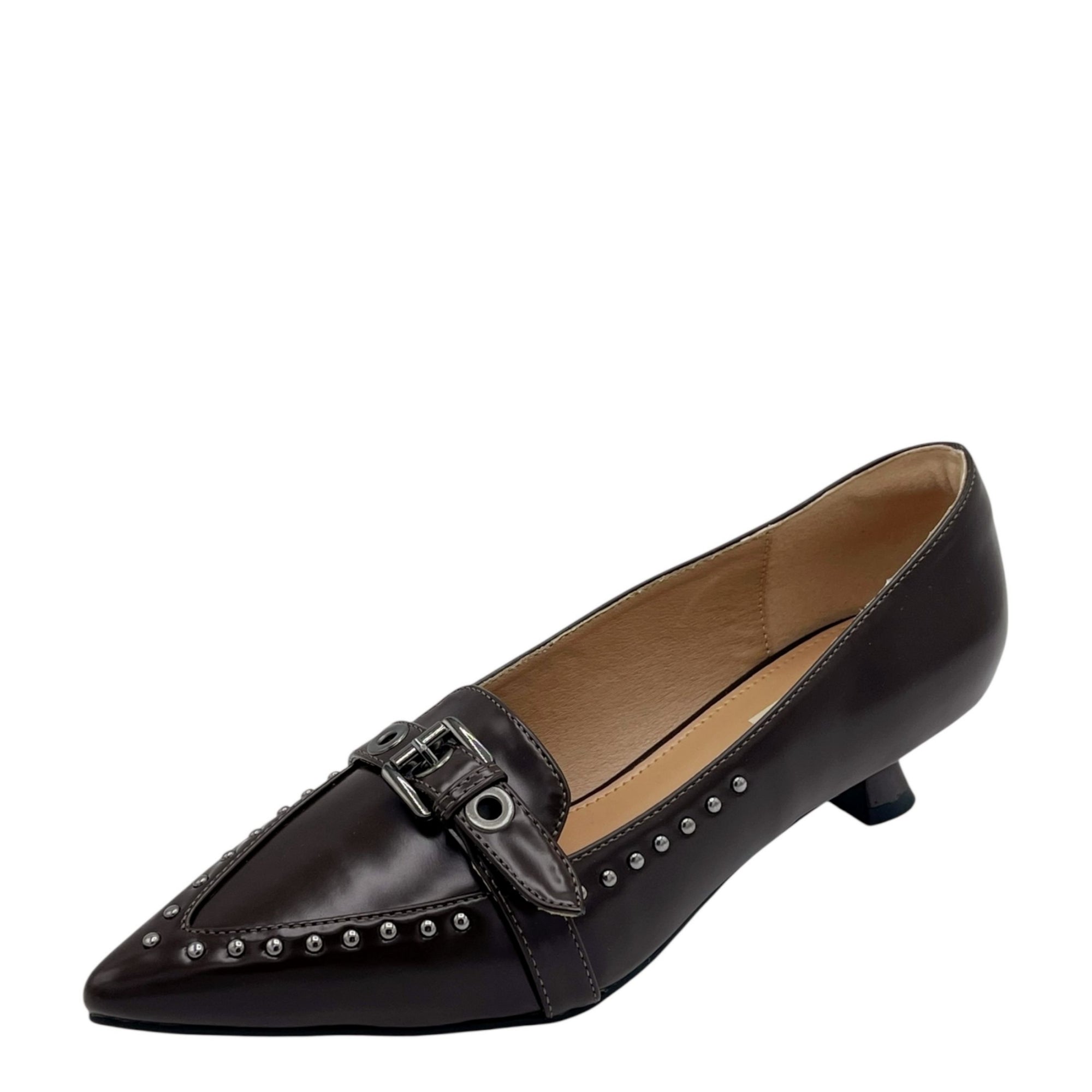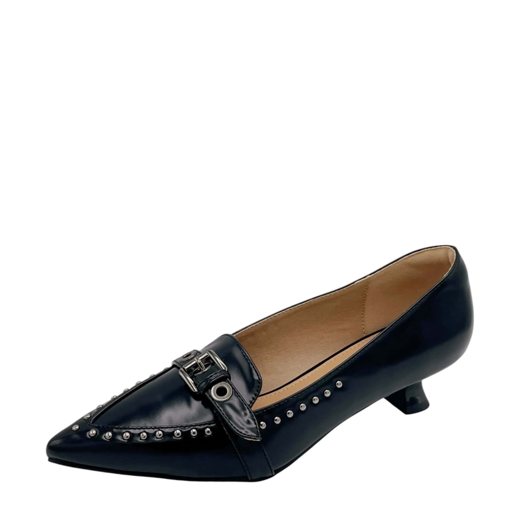 Le scarpe HAZEL FW25 presentano un tacco di 4 cm che assicura comfort e stile. La punta affusolata conferisce un design elegante, mentre le borchie sulla tomaia aggiungono un tocco di carattere moderno. Il cinturino regolabile con fibbia argento garantisce una calzata sicura e personalizzata. Realizzate in ecopelle liscia di alta qualità, offrono inoltre una fodera morbida che avvolge il piede con delicatezza, ideale per chi cerca qualità e raffinatezza in ogni dettaglio.